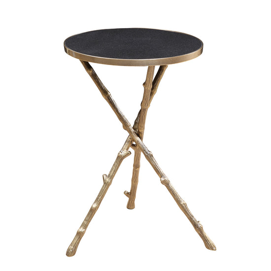 Meja samping ini dibuat dengan elegan, khususnya kaki meja yang seperti ranting yang ditata. Dipoles dengan warna emas yang mewah pada besi untuk kaki dan kerangka meja dan granit hitam di bagian atas. Menambah kilau dan gemerlap di setiap dekorasi rumah Anda.
