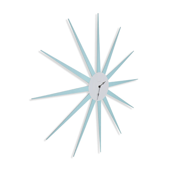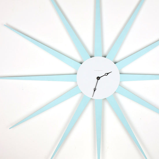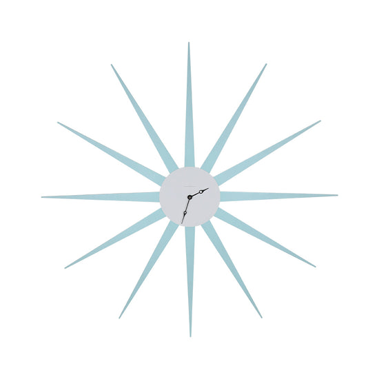 Wall Clock Dengan warna Blue yang berbentuk unik dan tidak monoton sehingga membuat ruangan menjadi unik dan playfull. Dengan material Powder coated steel.
